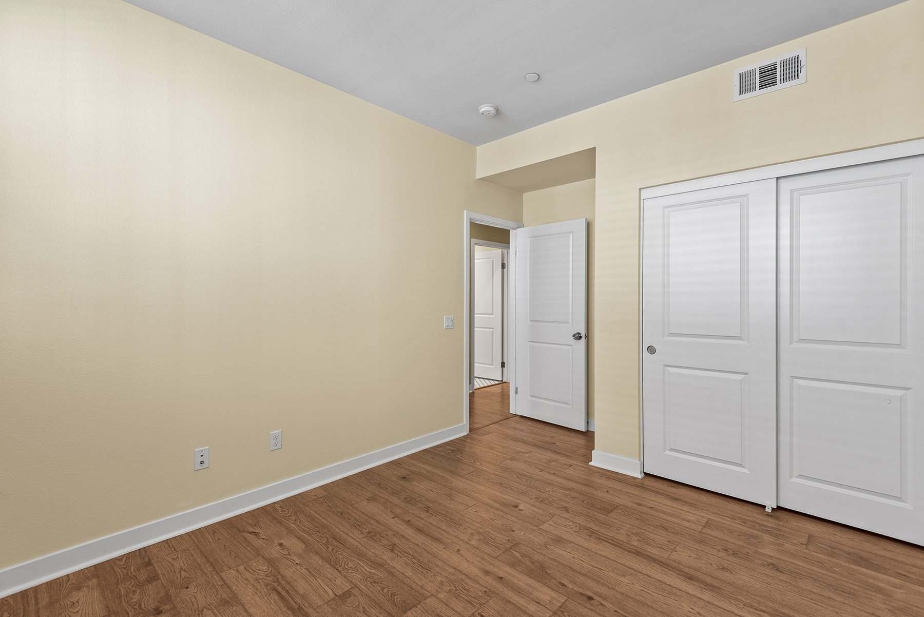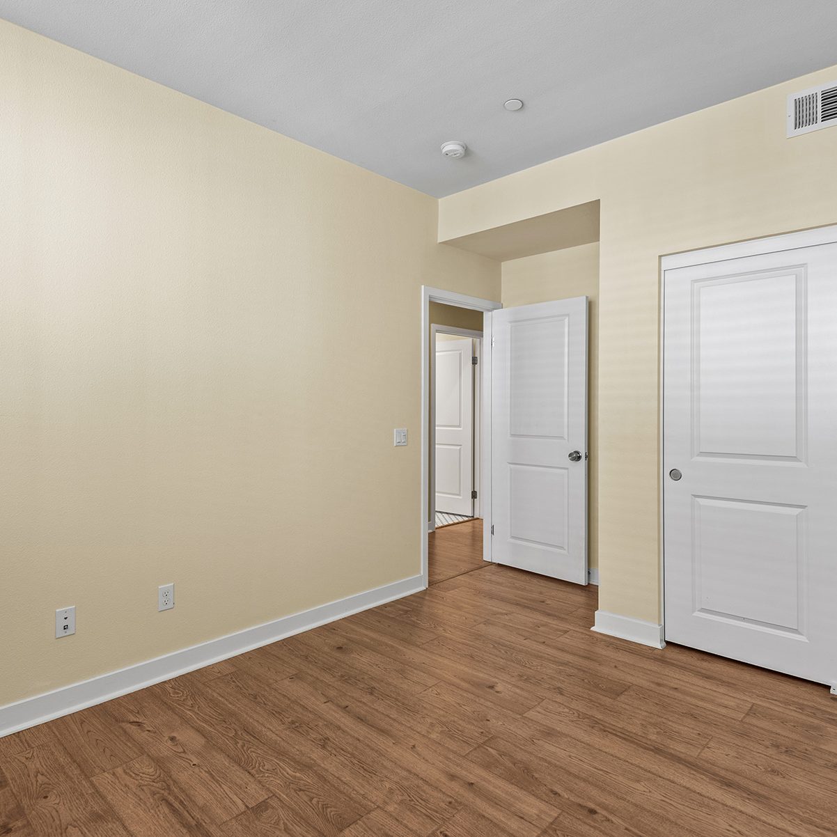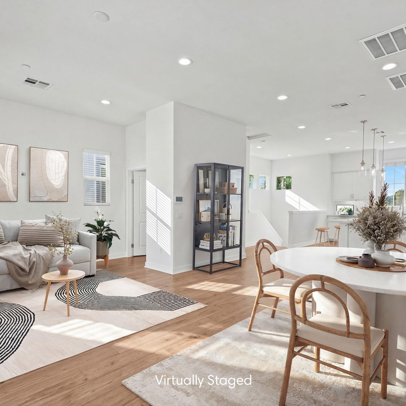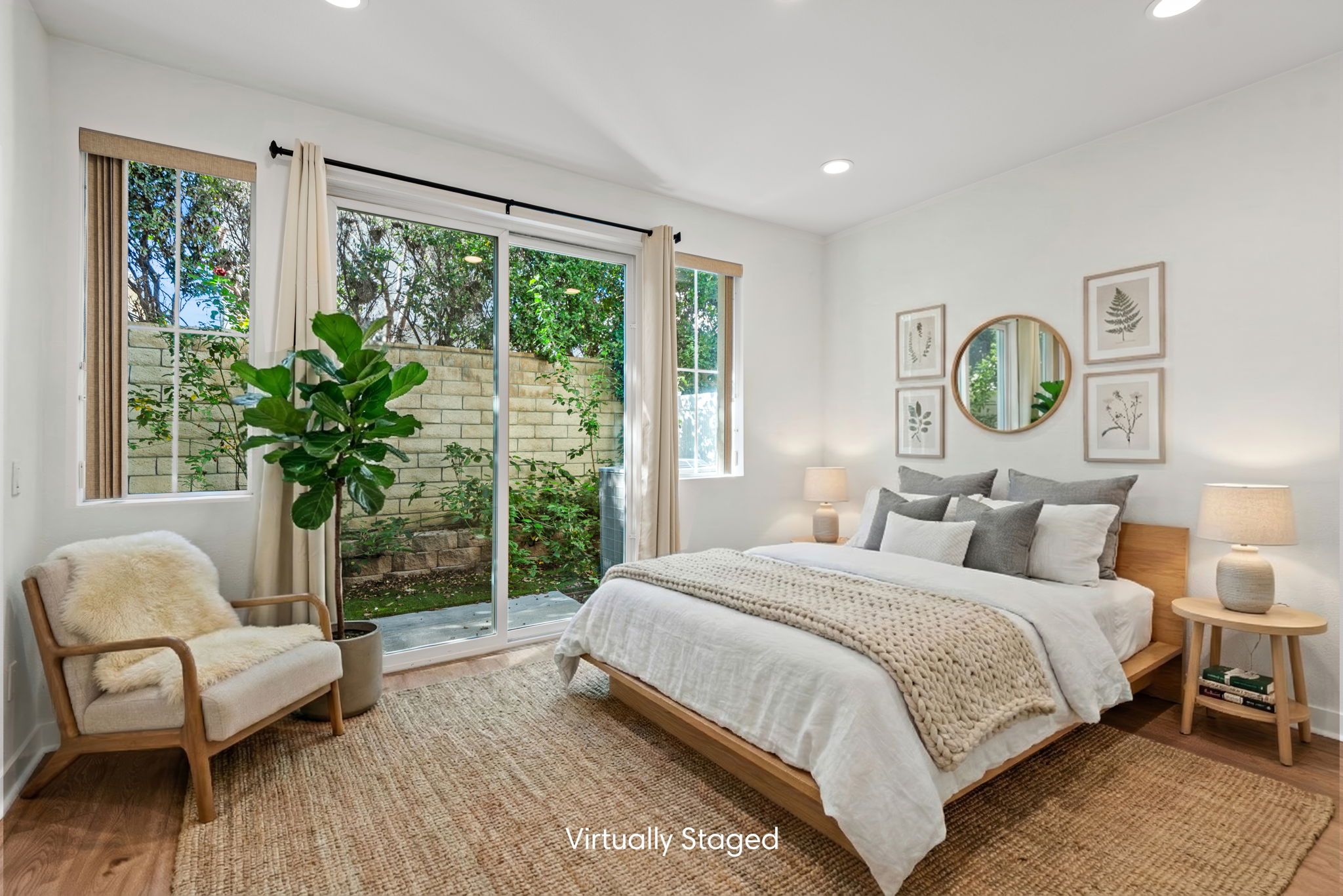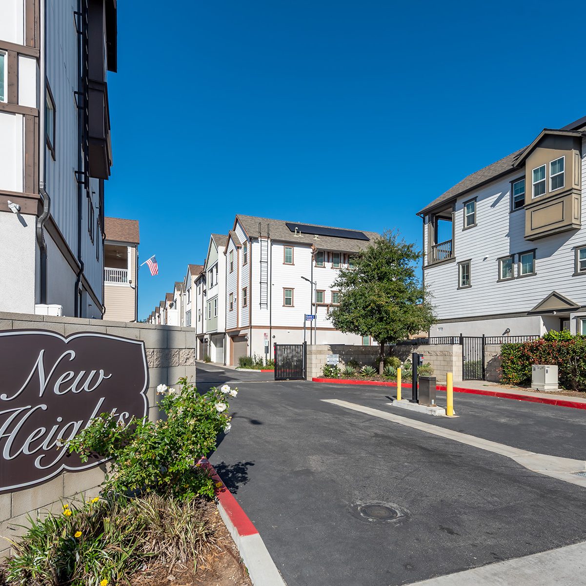 The main entry, via a private walkway, features high ceilings and natural light. The entry-level 4th bedroom suite offers privacy with an en-suite bath, walk-in closet, and side-yard access—ideal for guests, an office, or a gym. The second level houses the primary retreat with a dual-vanity en-suite and walk-in closet, two additional well-sized bedrooms served by a full dual-vanity bath with a soaking tub, and a separate laundry room with plenty of storage. The third floor is an open-concept living space with a gourmet kitchen and it features solid wood cabinets, stainless steel appliances, Quartz countertops, and a large island. Additionally a walk-in pantry, dining area, powder room, and spacious living room complete the modern floor plan. Sliding glass doors open the living room to a large, private covered patio, perfect for relaxing or BBQs. Additional features include: direct-entry 2-car garage, central air/heat, dual pane windows, paid-off solar panels, tankless water heater, and ceiling fans.
